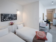 - お部屋はライトダブル、ライトツイン、コンドツイン、コンドトリプル(定員3名)、デラックスフォース(定員4名)の5タイプ ※コンドタイプの部屋はキッチン付