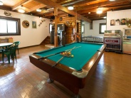 - 雨でも安心、地下のプレイングルームにはビリヤード台・卓球台あり