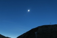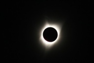 一瞬キラリと、いわゆるダイアモンドリングになったと思った瞬間、真っ黒な太陽になり(じつは新月)2分強のショーが始まりました。 瞬時に空が暗くなり、星が輝き、そしてコロナが光っています。まさにこの世のものとは思えない光景に感動! 気温も一気にさがり、太陽の恵みを体感した時間でした。 そして、また一瞬のダイアモンドリングの後、日食グラスをつけないと欠けが見えない太陽は、何事もなかったように、燦燦と輝いていました。