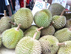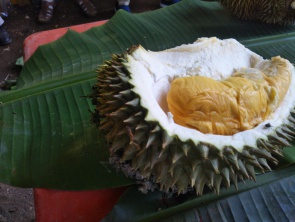 臭いが苦手という方も多い果物の王様ドリアン。年に2回収穫期がありちょうど今(7月、8月)が季節で今年は豊作ということです(次は11月)。とげとげのごつい皮で覆われていますが割るのは意外と簡単。採れたては悪名たかい臭いも殆どなく、みずみずしい果物と言うよりはカスタードクリームのような食感でとても美味しいです。先日ドリアン食べ放題ツアーに参加、農園でまさに採れたてを3個分くらいいただいて大満足でした。ドリアンは3度食べなければ美味しさが分からないと言うらしいのですが今回がまさに3回目、過去2回も美味しかったのですが今回ですっかりその美味しさにはまってしまいました。
