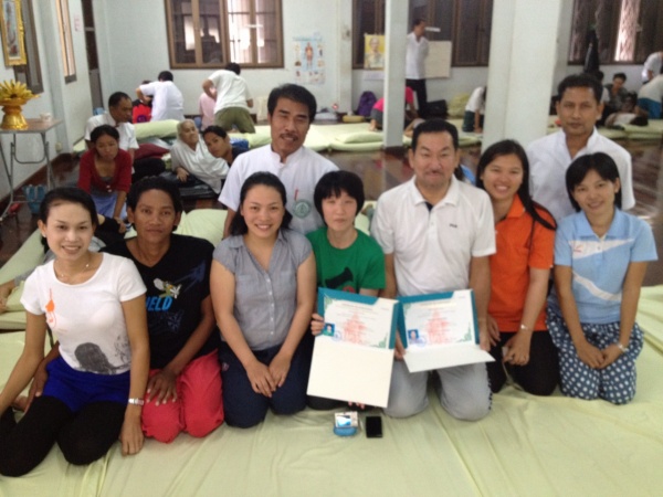 バンコクにはタイマッサージ学校がチェンマイに次いで沢山ありますが、肘や足など全身を使って女性施術者でもテコの原理で少ない力で効果的に被験者のツボを推せるチェンマイ式マッサージ学校はバンコクには多くなく古くからのタイ国医術法典であったワットポー式マッサージ学校が多くまた日本語教本もありまずはそこで学ぼうと思いました。学びに来てたのはタイ人中心でしたが各国の人もいて日本人は私と日本の介護施設で働く介護士の女性でした。彼女は介護現場で施述が使えたら施設入居者に喜ばれると思い来てました。タイ人の生徒はタイマッサージがタイでは主に女性の仕事ゆえ圧倒的に女性が多いのですが、中にはタイで多い中間性のレディーボーイもおりペアを組まされた時は女性と見るのか男性と見るのか対応に困りました。この初心者コース5日間で一般的なタイマッサージ1時間の施述コース技術が学べ最終日にはその1時間のコースを先生の前でマニュアル見ることなしに暗記して実施することで免状を与えられることになります。最終日前までにコース施術技術を先生からデモを受け生徒のペアとなりお互い施術者と被験者に交代で実施して覚えました。最終日前夜はホテルのベッドで1人マニュアルを見ながらエアタイマッサージ施術を行い当日に備えました。結果日本人2人はまじめに準備してきて一発合格でタイ人生徒は日本人が順序よく施術するのを盗み見てコースでやる事を思い出しやってこちらもパスしてました。5日間の初心者コースで約3万円チョットの受講料で試験パスした後写真付きのタイ国厚生省認可の免状をいただき帰国してまずは家族を相手に施術を行い好評をはくしてます。ただ残念なのは自分がマッサージを受けたい時は自分には施術できないことなのでできればご夫婦などで受講される事をお勧めします。またこの受講を経てからはタイマッサージ店で施術を受ける時は次のどこの部位をどのように施術するかが想像がつきそこの押し方の良し悪しを言えるようになりマッサージ店からはちょっと面倒くさい客になったかもしれません。日本やタイでマッサージ店に行った時はチェンマイ式などまた違った施術法を受けて感動することも多く、ワットポー式初心者コースは習得しましたがその後もフットマッサージコースも5日間かけて習得し、いまはタイ全身マッサージの上級コースを3週間かけて学びたいと思ってます。自分も家族も日本の家のご近所さんもみな高齢化してる中この施術を覚えてほかの人にしてあげることで喜ばれ、またいつでもどこでも身一つで施述が出来ることの手軽さはタイ文化の中でも最強の技術を覚えられたとロングステイのメリットを感じてます。