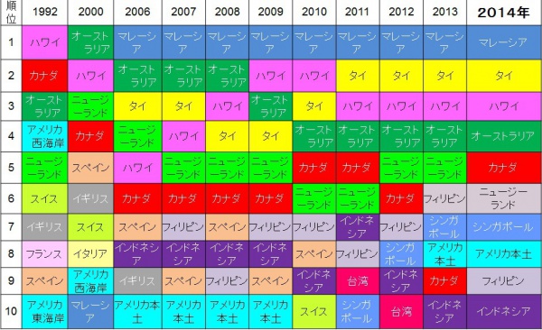 1位は、9年連続 マレーシア