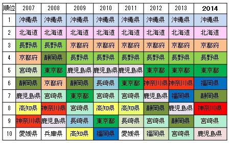 1位は、8年連続 沖縄県
