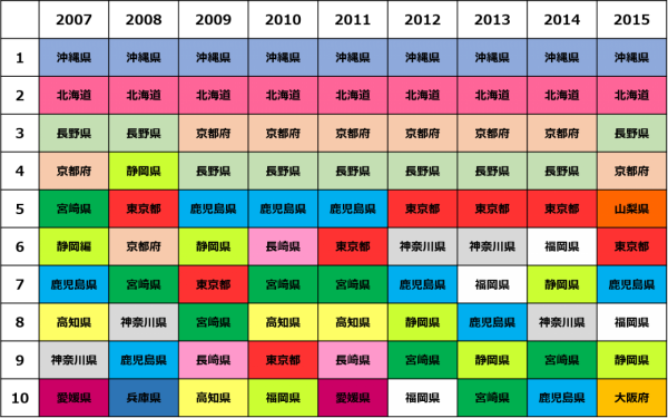 9年連続で、1位は沖縄県、2位は北海道という結果となりました。気候の良さ、避暑・避寒がロングステイの目的として人気があるためです。また、国内ロングステイ=バカンスのイメージが強く、観光地として人気の高い都道府県が評価されているようです。