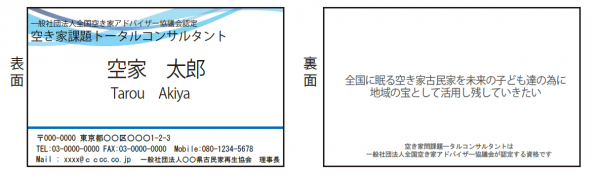 一般社団法人全国空き家アドバイザー協議会より委託を受け、一般財団法人ロングステイ財団が、空き家課題トータルコンサルタント及び、サスティナブルなまちづくりプランナーの認定証カード、名刺等のツール販売行っております。