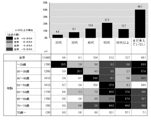 一方、現役世代では、現在の自分の年齢から真剣に考え始めたとの回答率が高く、今後年金受給年齢の引き上げなどの背景もあり、今後ますます若年化することが考えられる。(図7)