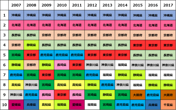 1位は11年連続、沖縄県!2位の北海道人気上昇