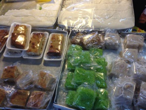 バナナを使ったお菓子がタイには色々ありますが、BTSバーンチャック駅の下、バーンチャック市場の一角で売られている「カノム・クワイ」は絶品です。程よい甘さにモチモチ感。日本茶に合うのは確実です。